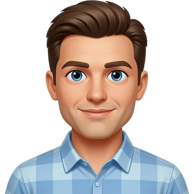 blue-eyed European guy working on a laptop, cheerful expression emoji emoji