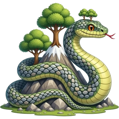 A giant snake with trees on its back and with stone on it and also rocks wrapping around a mountain emoji
