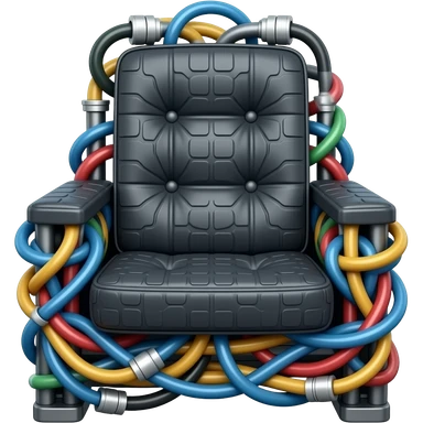 A high-tech electric chair frontal made of electric wires and cables with rubber scales that reveal its electric skeleton emoji