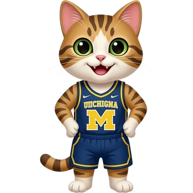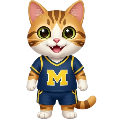 a happy cat wearing a university of michigan basketball jersey emoji