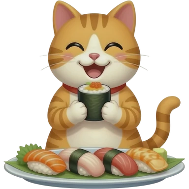 a happy cat in japan enjoying sushi emoji