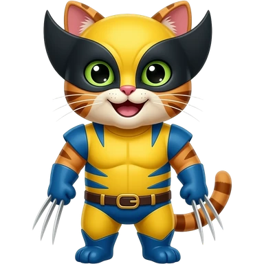 a happy cat dressed as a wolverine emoji