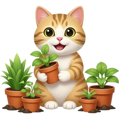 a happy cat gardening emoji