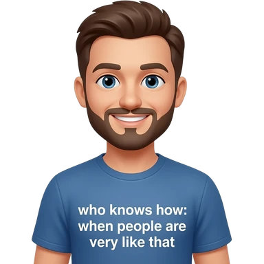 A happy man with a shirt that says ‘quiensabecomo: cuando la gente es muy asi’ emoji