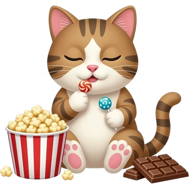 a sleepy eyed cat enjoying snacks and candy emoji