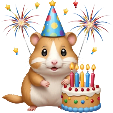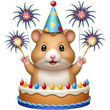 A hamster celebrating a birthday by throwing fireworks in front of a cake. emoji | AI Emoji Generator