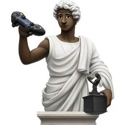 a gamer which hold a controller in their hand and have headphone and wear cool outfit. emoji
