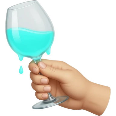 a hand holding a wineglass with drippy neon-glowing-cyan liquid emoji