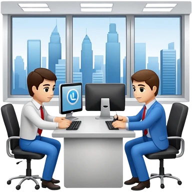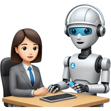 Digital Labour as an example of Agents at work in a workplace setting. I want to see a traditional office worker and a support co worker that is an AI Agent [Not a Robot]. emoji
