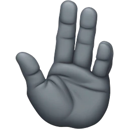 make a hand with with five fingers. the pointer finger, the thumb, and the middle finger should be pointed outward. the pinkie and the other finer should be pointing downward emoji