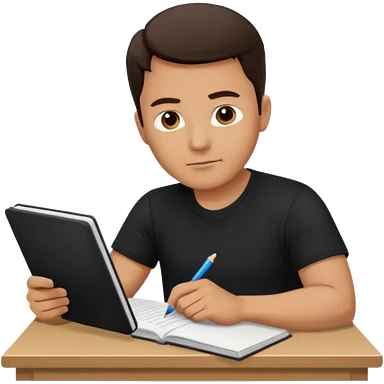 A handsome man in his 40s studying hard. Change his shirt in the first image to black. emoji