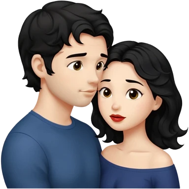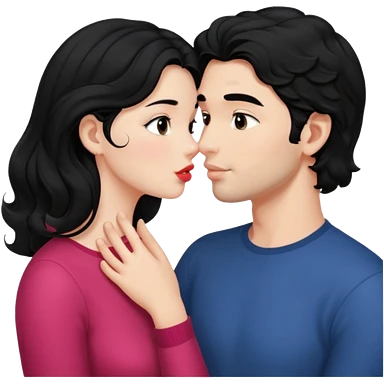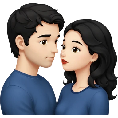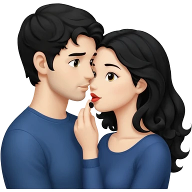 a handsome man with black hair tries to kiss a cute woman who has long black hair emoji