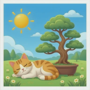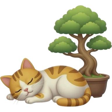 a cat sleeping next to a bonzai tree emoji