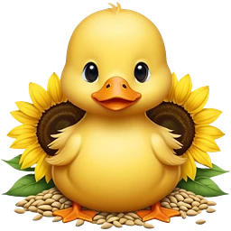 a happy duck with a pile of sunflower seeds emoji | AI Emoji Generator