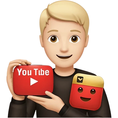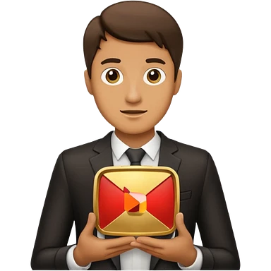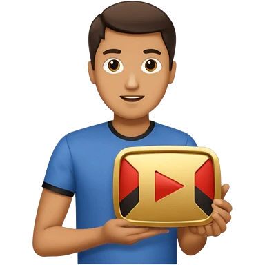 a happy man holding youtube golden play button emoji | AI Emoji Generator