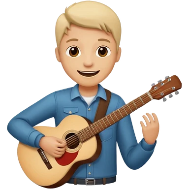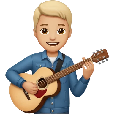male memoji, man in a white shirt, holding a guitar, dreamy smile emoji