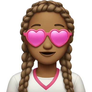 person with large chin wearing heart shaped sunglasses, their hair is in two braids with little daisies in it emoji