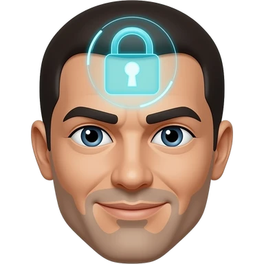 A sleek, confident face with a slight smirk—Front and center, A futuristic lock symbol integrated into the design—either on the forehead or as a hovering hologram beside you. Not just any lock… a code lock, softly pulsing, as if it’s always calculating the next move. emoji
