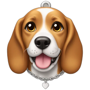 Smiling beagle with Sandy name on a heart shaped dog tag emoji