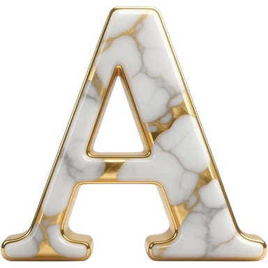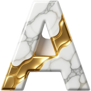 A luxurious uppercase letter 'A' crafted from polished white Carrara marble with deep veins of glowing liquid gold flowing through it. High-end jewelry aesthetic, soft studio lighting, elegant and Luxurious Marble Letter. emoji