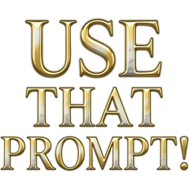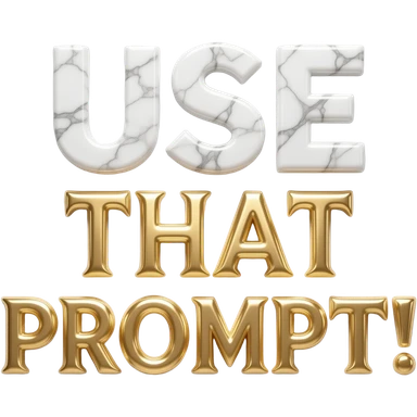 A luxurious uppercase text 'USE THAT PROMPT!' crafted from polished white Carrara marble with deep veins of more glowing liquid gold flowing through it. High-end jewelry aesthetic, soft studio lighting, elegant and Luxurious Marble Letter. emoji