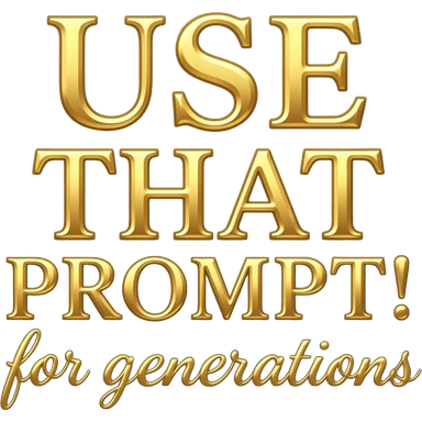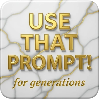 A luxurious uppercase text 'USE THAT PROMPT!' small size text 'for generations' crafted from polished white Carrara marble with deep veins of more glowing liquid gold flowing through it. High-end jewelry aesthetic, soft studio lighting, elegant and Luxurious Marble Letter. emoji