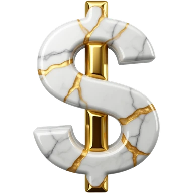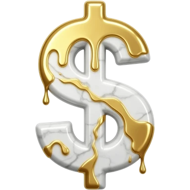 A luxurious uppercase letter '$' crafted from polished white Carrara marble with deep veins of more glowing liquid gold flowing through it. High-end jewelry aesthetic, soft studio lighting, elegant and Luxurious Marble Letter. emoji