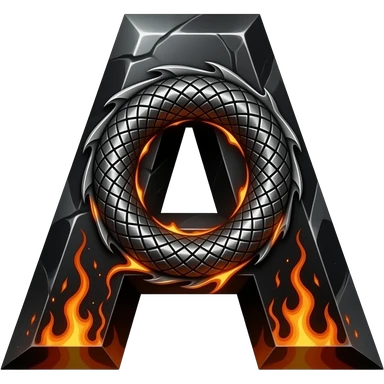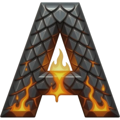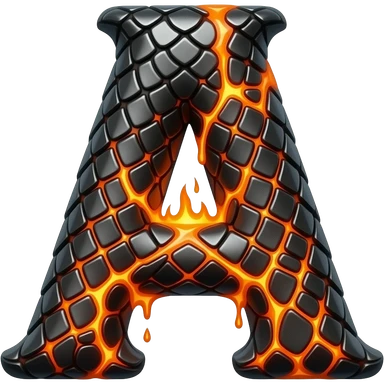 A heavy obsidian letter 'A' with molten lava flowing through engraved draconic scales. Emitting orange embers and heat distortion. Dark fantasy aesthetic, metallic texture, dramatic shadows emoji