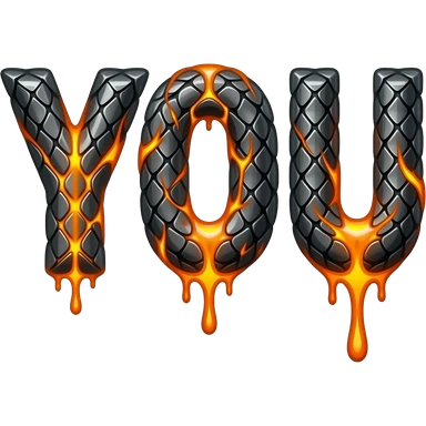 A heavy obsidian letter 'YOU' with molten lava flowing through engraved draconic scales. Emitting orange embers and heat distortion. Dark fantasy aesthetic, metallic texture, dramatic shadows emoji