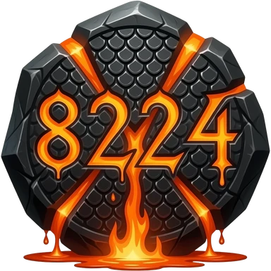 A heavy obsidian letter '8224' with molten lava flowing through engraved draconic scales. Emitting orange embers and heat distortion. Dark fantasy aesthetic, metallic texture, dramatic shadows emoji