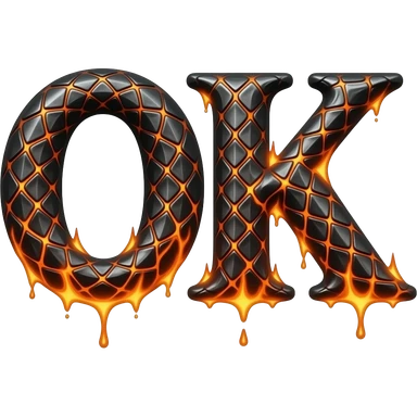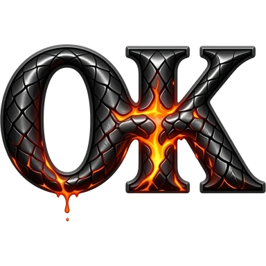 A heavy obsidian letter 'OK' with molten lava flowing through engraved draconic scales. Emitting orange embers and heat distortion. Dark fantasy aesthetic, metallic texture, dramatic shadows emoji