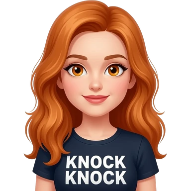 sexy girl with long ginger hair and ginger eyes a top with KNOCK KNOCK written on it emoji