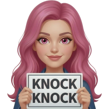 girl with long purple hair with a KNOCK KNOCK... sign emoji