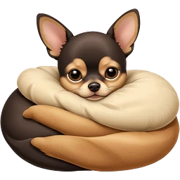 A high-resolution photo-realistic digital illustration of a cute black and tan chihuahua with big eyes closed sleeping lazily. emoji
