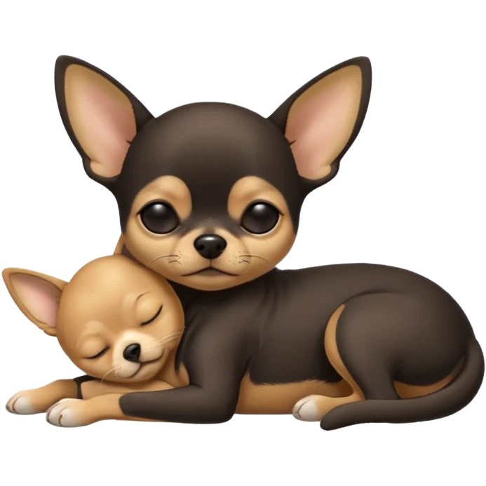 A high-resolution photo-realistic digital illustration of a cute black and tan chihuahua with big eyes closed sleeping lazily. emoji