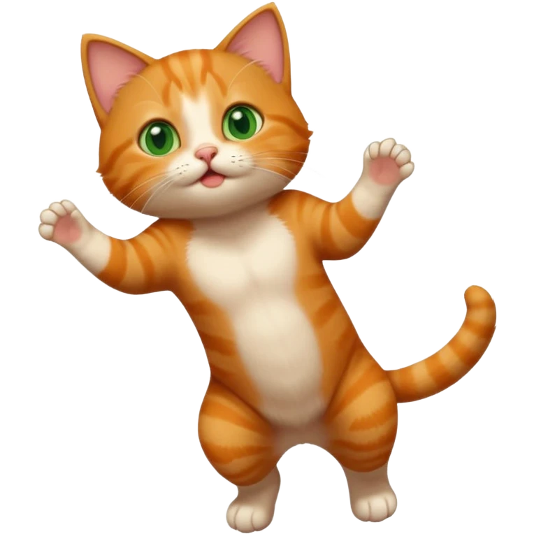 A high-resolution photo-realistic digital illustration of a ginger tabby cat head tilted yawning eyes open, chest upward emoji