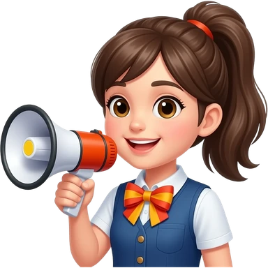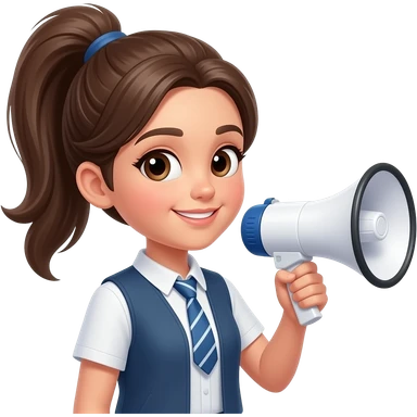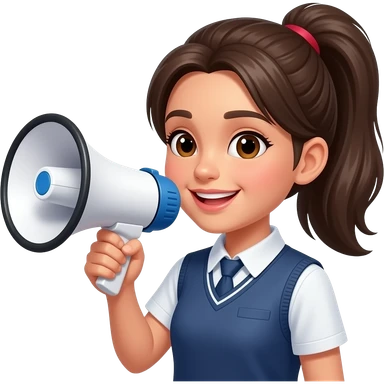 A pretty, fair-skinned high school girl with her hair tied up in a high ponytail, holding a megaphone. emoji