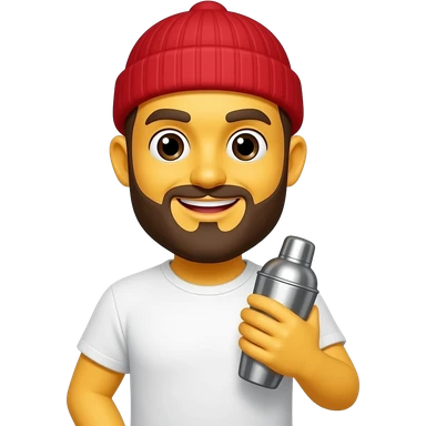 a yellow emoji, representing a hipster bartenderwith a red beannie, white tshirt and a shaker emoji