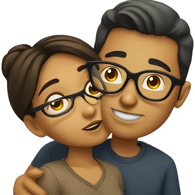 light hispanic guy wearing glasses kissing a light hispanic girl in the cheek emoji