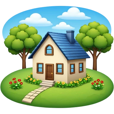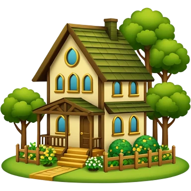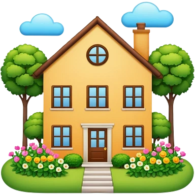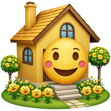 a home which has garden like and the home has slack emoji, emoji | AI Emoji Generator