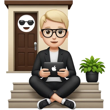 a home which has garden like and the home has slack emoji, where on the house steps, a blob holding black mac should sit and should look like wiork emoji