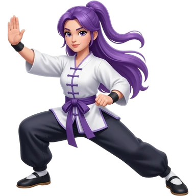 Cinematic Realistic Kung Fu Action Emoji, depicted as an epic martial arts scene with a master executing a precise move in traditional attire, rendered with fluid motion and vibrant textures under dramatic high-contrast lighting. emoji