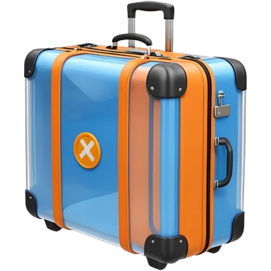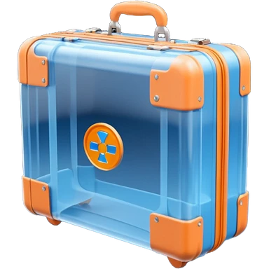 3D render of Suitcase Scan, X-Ray imaging aesthetic, translucent materials showing internal structure, orange and blue airport security style scan of a bag, medical scan style, emoji style, isolated on white background --v 6.0. emoji