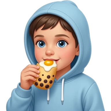 a little kid in a light blue hoodie eating boba fett from star wars and egg yolks rain from the damn sky emoji