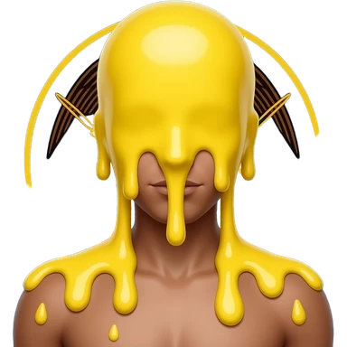 a humanoid figure made of egg yolks, and on his torso is the words "egg yolk man" emoji | AI Emoji Generator