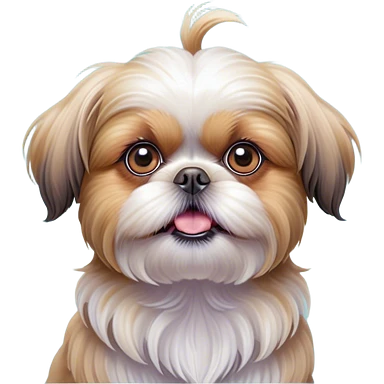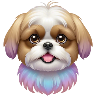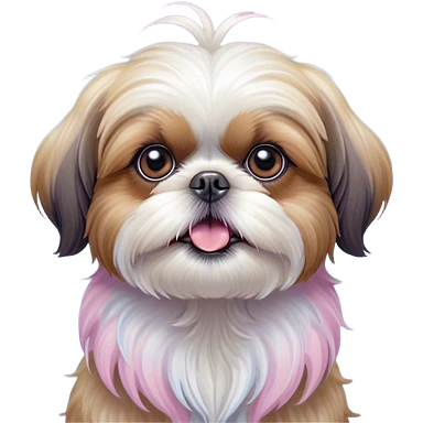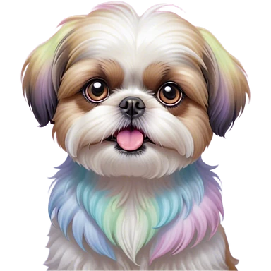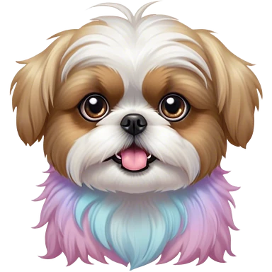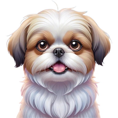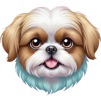 Cinematic Comical Shih Tzu Portrait Emoji, Head cocked with a hilariously exaggerated, shocked expression and twinkling, comically wide eyes, showcasing a fluffy, luxurious fur in soft pastel tones, simplified yet whimsically detailed, glowing with a playful, sassy radiance, high shine, exuding a humorous and cheeky charm, styled with a soft glowing outline, capturing the essence of a Shih Tzu that looks as if it could burst into a fit of playful antics at any moment! emoji
