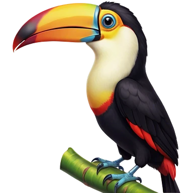 Cinematic Comical Toucan Portrait Emoji, Head tilted dramatically with an exaggeratedly shocked expression, featuring a boldly colored beak and wide, comically expressive eyes full of humorous disbelief, Simplified yet hilariously expressive features, highly detailed, glowing with a slightly sassy tropical glow, high shine, dramatic yet playful, stylized with an air of quirky exotic attitude, soft glowing outline, capturing the essence of a meme-worthy toucan that looks ready to side-eye its way into viral fame! emoji