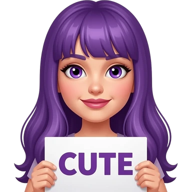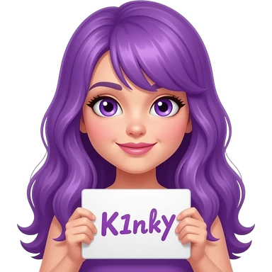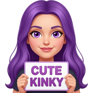 girl with long purple hair holding a CUTE but KINKY sign emoji