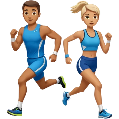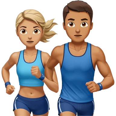 A muscled man and woman running a HYROX race in black fitness gear emoji