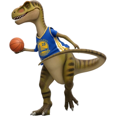 A spinosaurus playing basketball with a golden state warriors jersey emoji